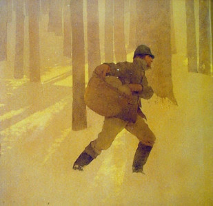 I also really like Parrish's monochromatic work. Here are two examples. The first is called Winter, and the second is called Harvest. I love the moods that Parrish creates.